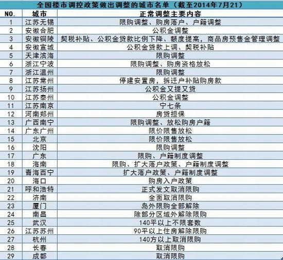 以下是今年以來對樓市調(diào)控政策作出調(diào)整的城市名單: