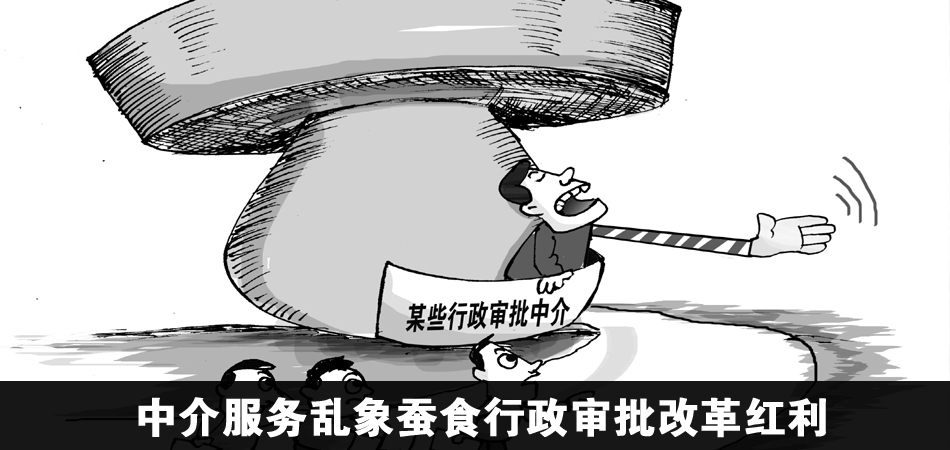 《經(jīng)濟參考報》記者近日在多地調查發(fā)現(xiàn),項目辦理主體一大半時間、精力和費用花在中介環(huán)節(jié),中介組織重復審批、壟斷市場、收費名目混亂等亂象層出不窮。很多中介服務組織與政府部門牽扯不清,既是部門權力的延伸,也存在利益輸送;鶎痈刹咳罕姳硎,國家推動行政審批制度改革,加大簡政放權力度,讓企業(yè)和個人受益良多,但混亂的中介服務正吞噬著這些改革紅利,同時損害著政府的公信力和形象。