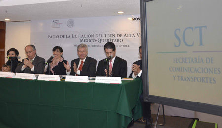 中國鐵建公告,北京時間4日凌晨,墨西哥通信和交通部宣布,中國鐵建與中國南車及4家墨西哥本土公司組成的聯(lián)合體中標(biāo)墨西哥城至克雷塔羅高速鐵路項目,合同金額約合270.16億元人民幣。