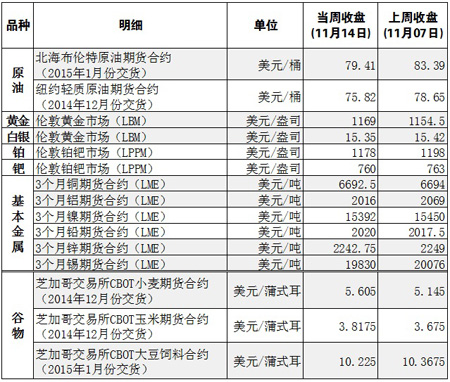 國際大宗商品期貨價格明細表[2014-11-17]