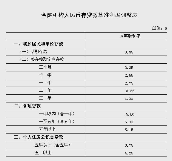 中國人民銀行決定,自2014年11月22日起下調(diào)金融機(jī)構(gòu)人民幣貸款和存款基準(zhǔn)利率。金融機(jī)構(gòu)一年期貸款基準(zhǔn)利率下調(diào)0.4個百分點(diǎn)至5.6%;一年期存款基準(zhǔn)利率下調(diào)0.25個百分點(diǎn)至2.75%,同時結(jié)合推進(jìn)利率市場化改革,將金融機(jī)構(gòu)存款利率浮動區(qū)間的上限由存款基準(zhǔn)利率的1.1倍調(diào)整為1.2倍;其他各檔次貸款和存款基準(zhǔn)利率相應(yīng)調(diào)整,并對基準(zhǔn)利率期限檔次作適當(dāng)簡并。