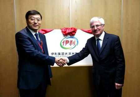 圖為伊利集團(tuán)董事長(zhǎng)潘剛與新西蘭貿(mào)易部長(zhǎng)TimGroser