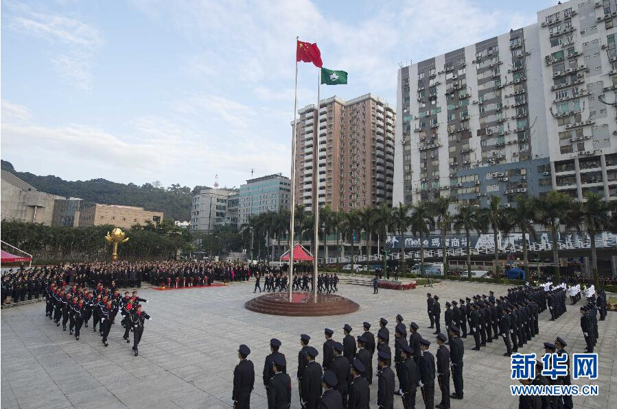 12月20日,澳門特區(qū)政府在金蓮花廣場舉行升旗儀式,慶祝澳門回歸祖國15周年。 新華社記者呂小煒攝