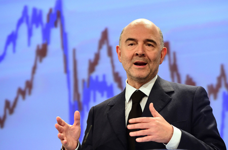 2月5日,在比利時布魯塞爾的歐盟委員會總部,歐盟委員會負(fù)責(zé)經(jīng)濟(jì)和金融事務(wù)的委員皮埃爾·莫斯科維奇發(fā)布對歐元區(qū)經(jīng)濟(jì)情況的最新預(yù)期。 根據(jù)歐盟委員會的判斷,2015年歐元區(qū)整體經(jīng)濟(jì)增速為1.3%,高于去年11月預(yù)測的1.1%,歐元區(qū)19個成員國都有望獲得正增長。此外,歐盟委員會預(yù)計歐盟整體經(jīng)濟(jì)今年將增長1.7%。