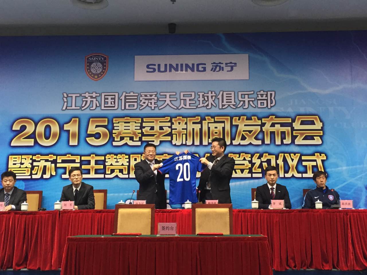 3月3日,從江蘇國信舜天足球俱樂部2015賽季新聞發(fā)布會傳出重磅消息:蘇寧正式簽約成為江蘇國信舜天足球俱樂部2015年的主贊助商,旗下快速發(fā)展的電子商務(wù)平臺蘇寧易購拿下了江蘇國信舜天球衣胸前廣告,雙方將在基礎(chǔ)贊助資金投入、商業(yè)運(yùn)營、球隊(duì)、粉絲文化建設(shè)、青訓(xùn)梯隊(duì)培養(yǎng)等領(lǐng)域開展全面合作。這是繼去年6月成為足球豪門巴塞羅那俱樂部中國區(qū)官方合作伙伴之后,蘇寧再度發(fā)力足球產(chǎn)業(yè)。