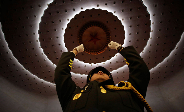 2015年3月5日,北京,十二屆全國人民代表大會第三次會議將在人民大會堂舉行開幕會,軍樂隊指揮進(jìn)行排練。