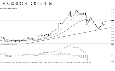 美元指數(shù)受到美聯(lián)儲(chǔ)利率決議的影響,短線發(fā)生暴跌行情。從日線圖上看,均線系統(tǒng)仍然保持依托狀態(tài),由于道氏低點(diǎn)支撐93.20距離現(xiàn)價(jià)過(guò)遠(yuǎn),美元指數(shù)想要結(jié)束中線的跌勢(shì)仍有很大的困難。從4小時(shí)圖上看,此波下跌力度迅猛,下方趨勢(shì)線支撐在96.15,美元指數(shù)有望逐步向此位置發(fā)起調(diào)整。短線有一定的上調(diào)需求,但在重新暴發(fā)出強(qiáng)勁的多頭動(dòng)能之前,不宜激進(jìn)看漲。