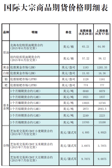 國際大宗商品期貨價(jià)格明細(xì)表[2015-4-27]