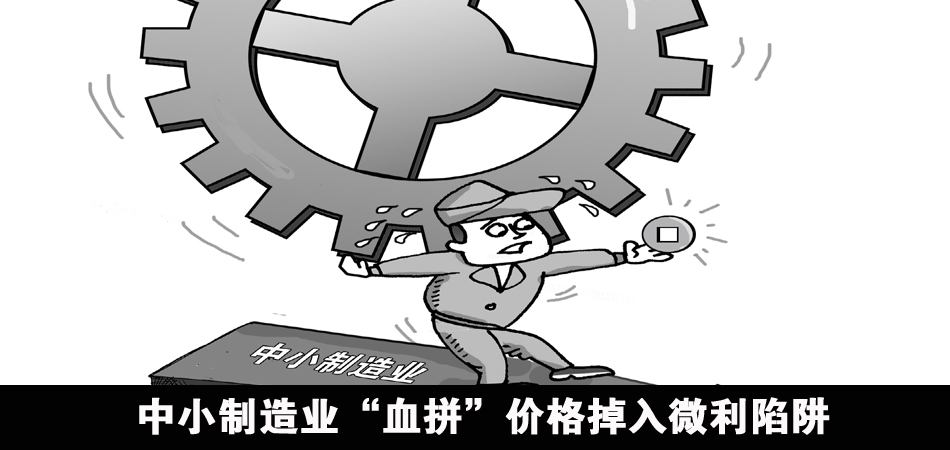 在德國(guó)工業(yè)4.0概念全球迅速走紅的同時(shí),備受關(guān)注的“中國(guó)制造2025”規(guī)劃也呼之欲出。在國(guó)家出臺(tái)一系列措施力圖振興制造業(yè)的同時(shí),我國(guó)制造業(yè)大而不強(qiáng)、附加值偏低等一系列問(wèn)題已不容回避。記者近期通過(guò)走訪多家中小制造業(yè)企業(yè)發(fā)現(xiàn),在人口紅利消減、外貿(mào)形勢(shì)趨緊等壓力下,為數(shù)眾多的制造業(yè)企業(yè)仍在產(chǎn)能過(guò)剩狀態(tài)下血拼價(jià)格,陷入微利運(yùn)營(yíng)的窘境,如“兩噸鋼利潤(rùn)時(shí)常換不來(lái)一只冰棍”正成為鋼鐵業(yè)的真實(shí)寫(xiě)照。此外,部分中型制造企業(yè)也由于既享受不到大企業(yè)的融資待遇,也享受不到小微企業(yè)的創(chuàng)業(yè)優(yōu)惠,陷入一種“政策孤立感”。