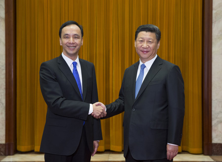 5月4日,中共中央總書記習近平在北京人民大會堂會見朱立倫主席率領的中國國民黨大陸訪問團。習近平就建設兩岸命運共同體提出5點主張。習近平強調,兩岸關系處于新的重要節(jié)點上。兩岸關系路應該如何走,是擺在兩岸所有政黨和社會各界面前的一個重大問題,攸關中華民族和國家未來,攸關億萬民眾福祉,需要我們大家認真思考。習近平表示,我們愿意首先同臺灣同胞分享發(fā)展機遇,愿意優(yōu)先對臺灣開放,并且對臺灣同胞開放的力度要更大一些。