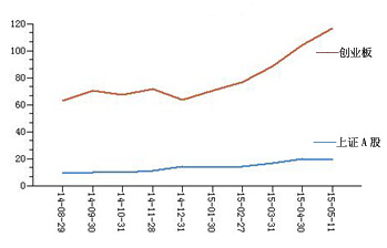 另一方面,單邊市場也是導致創(chuàng)業(yè)板估值不斷泡沫化的原因,目前,新基金正在大量的成立,百億元規(guī)模的基金也開始出現,這使得基金經理手中“彈藥”格外充足,在缺乏有力做空平衡工具的情況下,市場只能單邊上漲。WIND統(tǒng)計數據顯示,2015年3月,共有63只新基金發(fā)行,發(fā)行份額高達1795億份,到了4月份,新成立的基金達到了75只,發(fā)行份額搞到2193億份,而在2014年同期,這個數字只有25只和178億份。