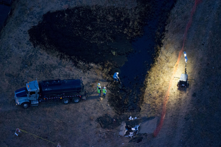 5月19日,在美國加利福尼亞州戈利塔,工人們在海灘上清理泄露的石油。 一名美國海岸警衛(wèi)隊(duì)發(fā)言人稱,美國加利福尼亞州一條輸油管道19日發(fā)生破裂,約7.9萬升石油泄漏,造成沿海水域和沙灘的污染。