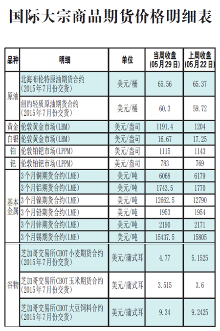 國(guó)際大宗商品期貨價(jià)格明細(xì)表[2015-6-1]