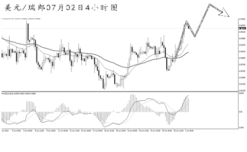 ▲美元兌瑞郎短線強力沖高。從日線圖上看,本周中K線收出兩根實體大陽,匯價將發(fā)力挑戰(zhàn)0.9540一線阻力。4小時圖MACD顯示多頭動能充盈,雖然上漲斜率十分陡峭,但由于前期的盤整過于無序,目前仍需警惕匯價發(fā)生下調(diào)的風(fēng)險。短線可謹(jǐn)慎看漲,但在升破0.9560之前,做多要謹(jǐn)慎。