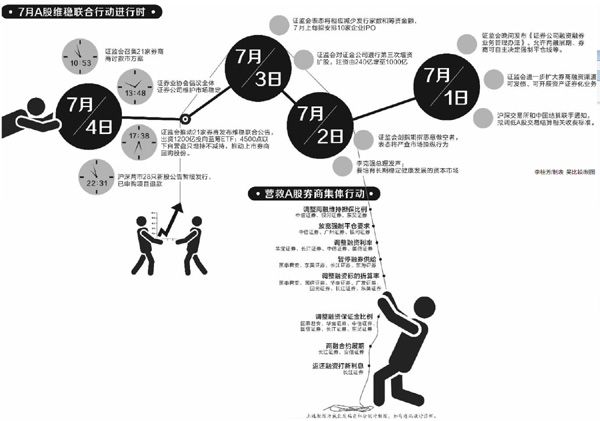 中信證券、招商證券等20家券商相關(guān)人士則紛紛表示,在國家金融系統(tǒng)穩(wěn)定受到威脅之際,證券公司出資維護資本市場長期穩(wěn)健發(fā)展,這是大中型券商義不容辭的責任,因此急事急辦,在不召開董事會的情況下,并在董事會授權(quán)的自營額度內(nèi),按照聯(lián)合公告的承諾出資,周一(6日)早上將相關(guān)資金打到監(jiān)管層指定的證金公司賬戶上。