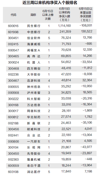 龍虎榜交易數(shù)據(jù)中,機(jī)構(gòu)席位買賣信息為投資者了解機(jī)構(gòu)動向提供參考。6月15日以來的A股巨震,讓不少個股遭遇資金斬倉出逃,但也有部分個股在市場“打折促銷”之時獲得機(jī)構(gòu)抄底買入。