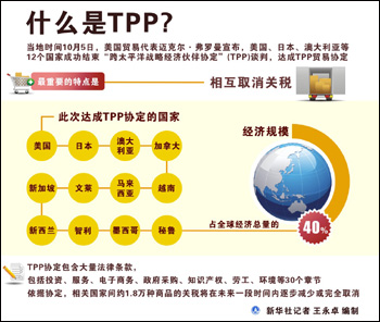 當?shù)貢r間10月5日,美國等12國經(jīng)貿(mào)部長發(fā)表聯(lián)合聲明,宣布歷時5年多的“跨太平洋戰(zhàn)略經(jīng)濟伙伴協(xié)定”(TPP,簡稱《協(xié)定》)談判結(jié)束。中國商務(wù)部新聞發(fā)言人6日表示,中方對符合世界貿(mào)易組織規(guī)則、有助于促進亞太區(qū)域經(jīng)濟一體化的制度建設(shè)均持開放態(tài)度。