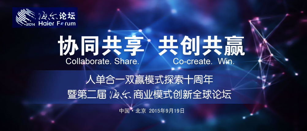 9月19日,“協(xié)同共享,共創(chuàng)共贏——人單合一雙贏模式探索十周年暨第二屆海爾商業(yè)模式創(chuàng)新全球論壇”在京舉行。與會學(xué)者和嘉賓共同見證海爾“人單合一”雙贏模式歷經(jīng)十年探索與實踐所取得的成果,并深入探討互聯(lián)網(wǎng)時代下的商業(yè)模式創(chuàng)新之道。