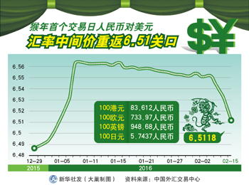春節(jié)后的第一個(gè)交易日,人民幣對(duì)美元就強(qiáng)勢(shì)上漲。15日,中國(guó)外匯交易中心公布的人民幣對(duì)美元匯率中間價(jià)報(bào)6.5118,較前一交易日上漲196個(gè)基點(diǎn),漲幅達(dá)0.30%。與此同時(shí),在岸人民幣兌美元即期匯率當(dāng)日收盤價(jià)報(bào)報(bào)6.4944,較上個(gè)交易日收盤價(jià)大漲751基點(diǎn),創(chuàng)下2005年7月匯改以來的最大單日漲幅。