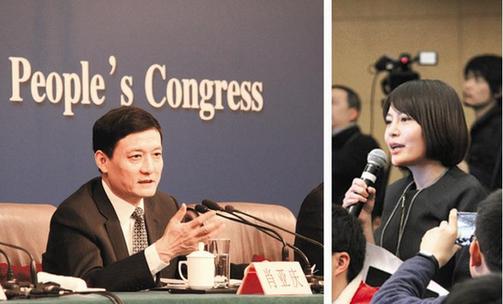 3月12日,十二屆全國(guó)人大四次會(huì)議新聞中心舉行記者會(huì)。國(guó)資委主任肖亞慶(左圖)在回答《經(jīng)濟(jì)參考報(bào)》記者楊燁(右圖)提問時(shí)表示,去年央企整體利潤(rùn)為6.9%的負(fù)增長(zhǎng)。在經(jīng)濟(jì)下行壓力下,今年以來,央企將壓力轉(zhuǎn)化為動(dòng)力,1至2月份,央企利潤(rùn)增長(zhǎng)了4.7%。他說,央企今年的情況相對(duì)穩(wěn)定,各個(gè)央企在穩(wěn)增長(zhǎng)和提效益方面也做了大量工作。不過,從部分行業(yè)目前所處的狀況來看,恐慌心理比下行壓力更可怕,并有可能帶來更大的下行。我國(guó)市場(chǎng)很大,關(guān)鍵是從央企開始,振奮精神,真抓實(shí)干,要把產(chǎn)品質(zhì)量提高,把成本降下來。????本報(bào)記者 張莫 攝