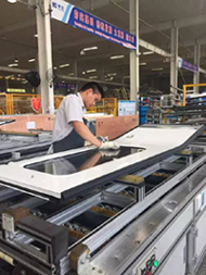 江蘇天加集團車間,工人正在進行流水作業(yè)。(溫源攝)? |
