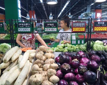 9日,國家統(tǒng)計局發(fā)布報告,7月我國居民消費價格總水平(CPI)同比上漲1.8%。圖為市民在上海一家超市內(nèi)購買蔬菜。新華社記者 丁汀/攝? |