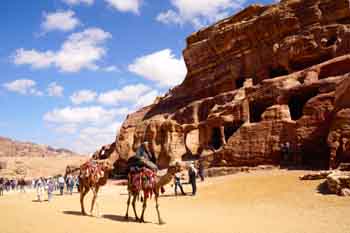 沿著競技場繼續(xù)往前走,就是曾經(jīng)輝煌一時的古羅馬大道。當?shù)氐男∝?,代步的毛驢,拍照的駱駝,身穿傳統(tǒng)服裝的阿拉伯人,來來往往于這條石路上。這里,曾經(jīng)承載著幾千年的文明。公元 106年佩特拉被羅馬帝國皇帝圖拉真軍隊攻陷,淪為羅馬帝國的一個行省,曾作為商路要道盛極一時。