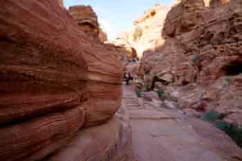 要走過3公里的峽谷才能進入真正的佩特拉古城,沿著山體往里走,沿途巖石色彩漸漸變化,粉紅色慢慢加重,接近玫瑰紅。而道路上一群群畫著煙熏裝扮,像酷似杰克船長的當?shù)啬腥蓑T著駱駝從你身邊穿行而過,散發(fā)著典型的阿拉伯風(fēng)情。