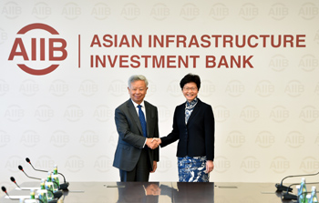 ??? 8月7日,香港特別行政區(qū)行政長(zhǎng)官林鄭月娥(右)到訪亞洲基礎(chǔ)設(shè)施投資銀行(亞投行)總部,并與亞投行行長(zhǎng)金立群會(huì)面。林鄭月娥表示,作為國(guó)際金融中心,香港期待更加積極地參與亞投行事務(wù)。記者 李鑫 攝