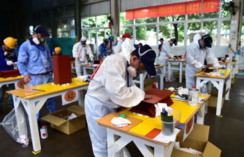 ??? 8月6日,技術(shù)工人在涂裝競(jìng)技項(xiàng)目上比拼技能。當(dāng)日,安徽合肥經(jīng)開(kāi)區(qū)第二屆勞動(dòng)和技能競(jìng)賽開(kāi)賽,來(lái)自轄區(qū)38家企業(yè)的86名技術(shù)工人在涂裝、釬焊、叉車(chē)項(xiàng)目上進(jìn)行競(jìng)技。記者 劉軍喜 攝
