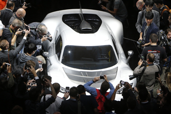 ??? 9月11日,在德國法蘭克福,來賓在首發(fā)式上參觀奔馳頂級(jí)超跑AMG Project One。法蘭克福國際車展于9月14日正式對(duì)公眾開放。新華社/美聯(lián) |