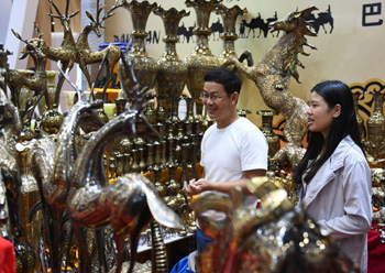 ??? 9月13日,在第14屆中國—東盟博覽會(huì)“一帶一路”專題展區(qū),參觀者在選購來自巴基斯坦的產(chǎn)品。第14屆中國—東盟博覽會(huì)于12日至15日在廣西南寧舉辦,本屆博覽會(huì)首次設(shè)立“一帶一路”專題展區(qū),邀請(qǐng)沿線國家企業(yè)參展。記者 陸波岸 攝 |