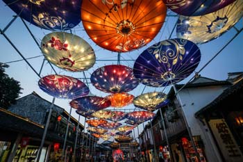 ??? 2017海峽兩岸(昆山)中秋燈會于9月20日在江蘇省水鄉(xiāng)古鎮(zhèn)周莊揭幕,燈會通過“昆山印象”“寶島風(fēng)情”“周莊故事”和“祈福中華”4大主題燈區(qū)、120組燈彩呈現(xiàn)中秋民俗傳統(tǒng)。記者 楊磊 攝 |