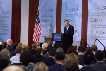 ??? 9月18日,美國貿(mào)易代表羅伯特·萊特希澤在華盛頓智庫戰(zhàn)略與國際問題研究中心發(fā)表演講。萊特希澤說,減少貿(mào)易逆差是特朗普政府貿(mào)易政策的優(yōu)先考慮事項(xiàng),美國將尋求對等的貿(mào)易關(guān)系。這一表態(tài)加深了觀察人士對美國和他國貿(mào)易沖突加劇的擔(dān)憂。記者 殷博古 攝 |