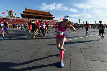 ??? 9月17日,參賽選手從天安門前經(jīng)過。當(dāng)日,2017北京馬拉松賽在北京天安門廣場開跑。記者 鞠煥宗 攝 |