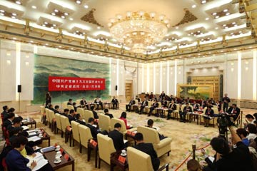 10月18日,十九大部分代表團討論向中外記者開放。這是中央企業(yè)系統(tǒng)(在京)代表團在討論。新華社記者 金立旺/攝? |