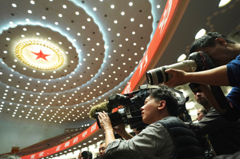 ??? 10月24日,中國共產黨第十九次全國代表大會閉幕會在北京人民大會堂舉行。這是記者在采訪拍攝。記者 陳建力 攝 |