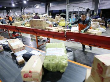 ?“雙十一”過(guò)后,各地電商快遞迎來(lái)物流高峰。圖為11月12日清晨,在山東省濰坊市一家快遞公司分揀中心,工作人員在分揀貨件。新華社發(fā)(張馳 攝) |