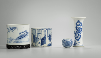 景德鎮(zhèn)的明代御器廠(chǎng)在萬(wàn)歷三十六年(1608年)正式輟燒,這意味著民窯可以完全擺脫皇權(quán)的各種鉗制,進(jìn)入了一個(gè)空前繁榮的輝煌時(shí)代。過(guò)去被御器廠(chǎng)壟斷的優(yōu)質(zhì)原材料、先進(jìn)技術(shù)與高級(jí)窯工,如今都轉(zhuǎn)向民窯作坊,龐大的外銷(xiāo)訂單與繁榮的內(nèi)銷(xiāo)市場(chǎng)刺激了民窯作坊在規(guī)模與質(zhì)量上的雙飛躍。青花與五彩瓷是十七世紀(jì)的主流產(chǎn)品,景德鎮(zhèn)此時(shí)制瓷的分工與流程也越來(lái)越細(xì)致、繁復(fù)、專(zhuān)業(yè),產(chǎn)品品質(zhì)自然也越來(lái)越高。許之衡在《飲流齋說(shuō)瓷》中評(píng)價(jià)“硬彩、青花均以康熙為極軌?!眰鹘y(tǒng)的山水紋樣始終是畫(huà)匠與窯師們最?lèi)?ài)的題材之一。得益于瓷胎與青花料的提純技術(shù)的提高,青花瓷上的山水開(kāi)始與傳統(tǒng)的繪畫(huà)技法風(fēng)格融合,所謂紙絹上講究墨分五色的水墨變化效果,也被應(yīng)用在青花瓷器的發(fā)色濃淡層次變化上,并結(jié)合各種筆皴之法,使此時(shí)瓷器上的山水圖成為了純粹的繪畫(huà)藝術(shù)。硬冷的瓷面上,如手卷般徐徐展開(kāi)的山川河流、寒峰雅舍,或是華茂參天的古樹(shù),在王朝更迭、山河變色的大時(shí)代里,顯得更加意味深長(zhǎng),高潔雋永。他們是道德禮樂(lè)的制定者,卻也是離經(jīng)叛道的破壞領(lǐng)袖;他們是精神境界的倡領(lǐng)者,卻也是風(fēng)花雪月的糜爛分子;他們是文化品位的創(chuàng)造者,卻也是懷才不遇的落魄之徒。他們就是古代的文人士大夫。晚明以后,在國(guó)破家亡的歷史轉(zhuǎn)折里,大批從追求仕途中解放出來(lái)的文人名士,紛紛轉(zhuǎn)向社會(huì)活動(dòng),他們的藝術(shù)才情開(kāi)始向建筑、造園、工藝、版畫(huà)、家具、制瓷等諸多工商業(yè)領(lǐng)域傾注延伸,他們結(jié)社交游、賞鑒古董、吟風(fēng)弄月、怡情養(yǎng)生,將高雅脫俗的精神境界與日常生活相結(jié)合,從而形成了一套獨(dú)特而完整的藝術(shù)生活體系,成為了整個(gè)社會(huì)的藝術(shù)、時(shí)尚、審美、品級(jí)的指南與指標(biāo)。