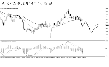 ▲美元兌瑞郎小幅反彈后再度發(fā)起下調。經(jīng)過短線的下調,MACD重新進入到空頭動能充盈的階段。短線下調力度迅猛但幅度有限,可謹慎看空,但需隨時謹防匯價重新發(fā)起上攻風險。