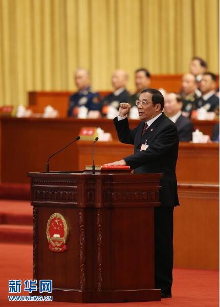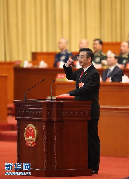 3月18日,十三屆全國人大一次會(huì)議在北京人民大會(huì)堂舉行第六次全體會(huì)議。周強(qiáng)當(dāng)選為最高人民法院院長。這是周強(qiáng)進(jìn)行憲法宣誓。新華社記者 姚大偉 攝