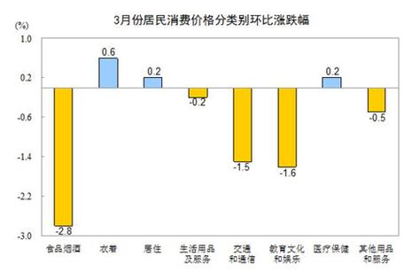 3月份,全國居民消費價格環(huán)比下降1.1%。其中,城市下降1.1%,農(nóng)村下降1.2%;食品價格下降4.2%,非食品價格下降0.4%;消費品價格下降1.4%,服務(wù)價格下降0.7%。