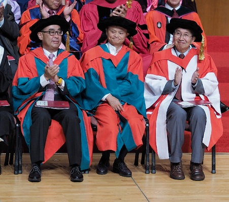 日前,香港大學(xué)授予企業(yè)家馬云(右二)、蒙德?lián)P(右三)和科學(xué)家鄧青云(右一)共3人名譽(yù)博士學(xué)位,以表彰他們?cè)趯W(xué)術(shù)和社會(huì)等方面作出的貢獻(xiàn)。新華社發(fā)(王申 攝)