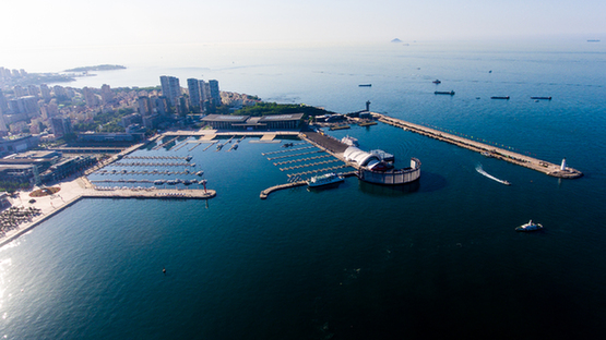 航拍視頻顯示,從棧橋上方往北望去,歐美風格的古老建筑掩映在現(xiàn)代建筑之中:像是到了歐洲的某個城市。