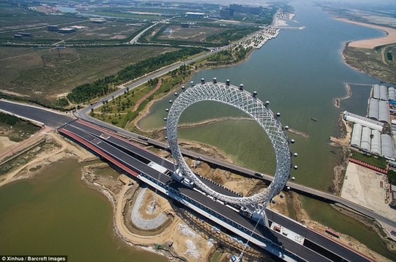 讓人眼前一亮的還有位于山東濰坊白浪河上的世界首個(gè)無(wú)軸式輪橋合一摩天輪。摩天輪高度達(dá)到145米,比世界著名的倫敦眼還要高出10米,而輪盤的直徑達(dá)125米。