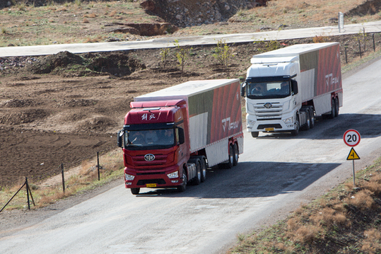 正在進行測試的解放牌智能重型卡車。(資料照片)