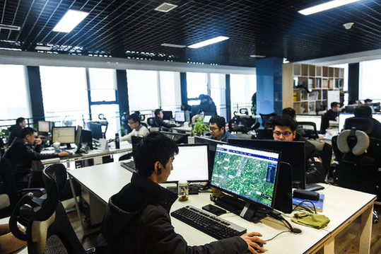 軟件工程師們在貴州東方世紀(jì)科技公司“東方祥云”平臺進(jìn)行研發(fā)。記者 陶亮 攝