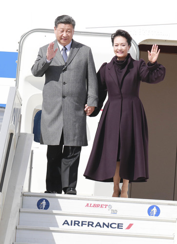 3月25日,國家主席習(xí)近平在巴黎愛麗舍宮同法國總統(tǒng)馬克龍會談。當(dāng)日上午,習(xí)近平結(jié)束在尼斯的行程,乘專機離開尼斯赴巴黎,繼續(xù)對法國進行國事訪問。這是習(xí)近平和夫人彭麗媛抵達巴黎戴高樂機場。 新華社記者 丁林 攝