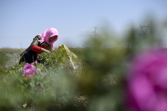 近年來,寧夏同心縣積極進(jìn)行生態(tài)恢復(fù)建設(shè),調(diào)整種植、養(yǎng)殖結(jié)構(gòu),環(huán)境得到明顯改善,用來制作茶飲的四季玫瑰得以在此生長。圖為同心縣石獅鎮(zhèn)滿春村村民在采摘四季玫瑰。新華社發(fā)(馮開華 攝)