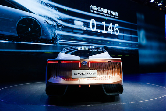 ENO.146概念車是廣汽集團(tuán)打造的6座大型電動乘用車,通過完全流線型的車身造型、車身側(cè)面完全平面的輪轂設(shè)計(jì),以及車窗下沿的導(dǎo)流槽,ENO.146概念車實(shí)現(xiàn)了超低風(fēng)阻系數(shù),風(fēng)阻系數(shù)僅有0.146,創(chuàng)下了全球低風(fēng)阻新紀(jì)錄,體現(xiàn)了廣汽研究院在空氣流場管理與風(fēng)阻降低技術(shù)的先進(jìn)性。
